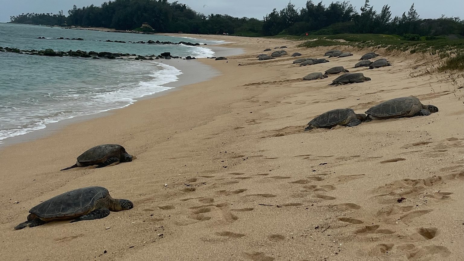 Looking out at the ocean from our balcony you would typically see a whale spout every 30 seconds. The whale density is pretty extraordinary when you consider that, like icebergs, 90% of whales are not visible (don’t fact-check this). Flying into Maui it was cloudy and windy. Sophie went on a run at the airport and saw an army of turtles. They are organized, watch out.